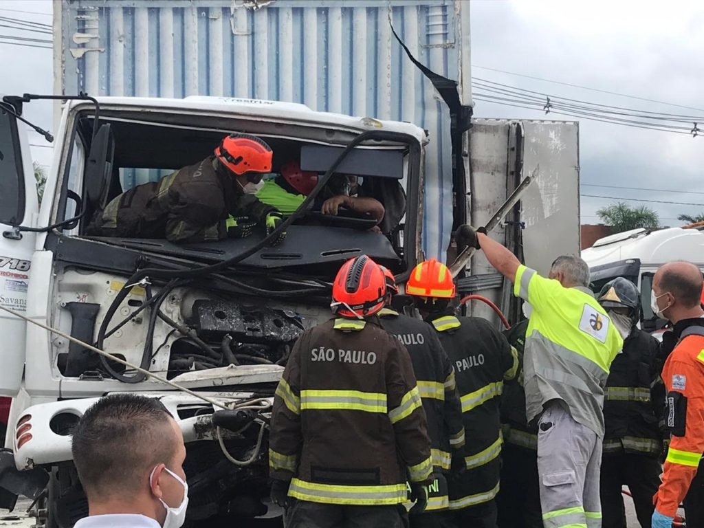 Os socorristas informaram que, após a colisão traseira, o motorista de um dos veículos ficou preso às ferragens. Não há informações sobre o estado de saúde dele. Segundo os Bombeiros, um dos caminhões estava carregado com gasolina, mas não foi detectado vazamento do produto, nem risco de incêndio.