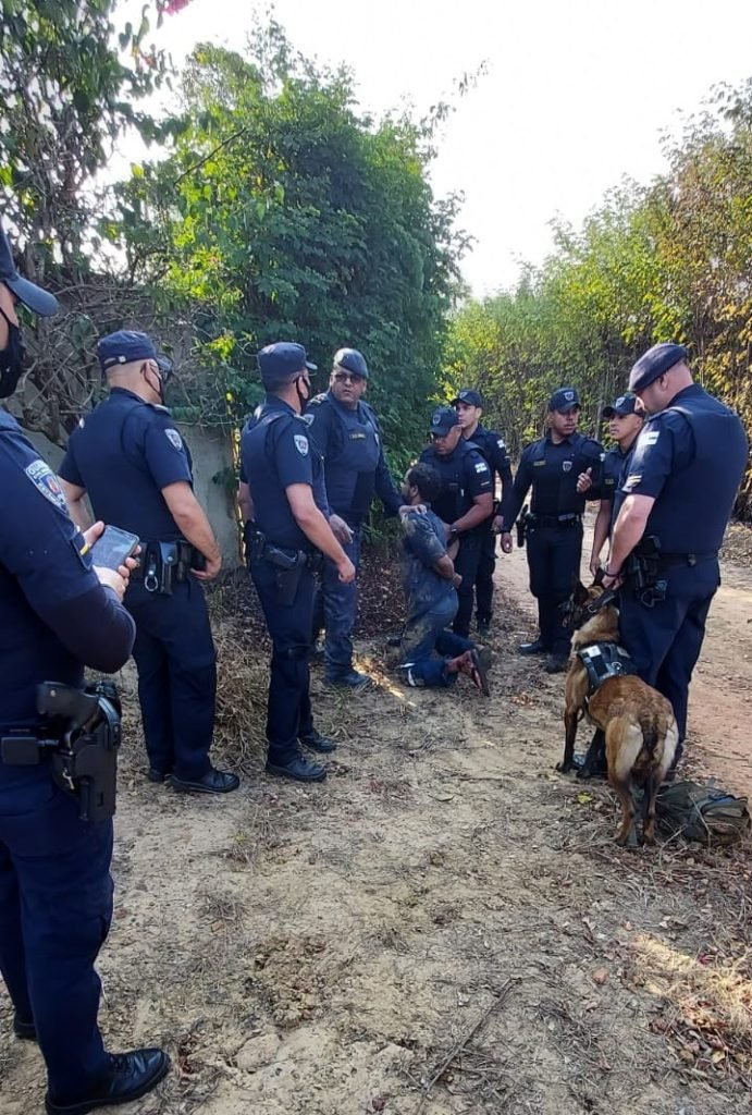 Guardas civis municipais, Polícia Militar, com o auxílio do Helicóptero Águia, iniciaram as buscas e encontraram o suspeito na parte da tarde, ferido.