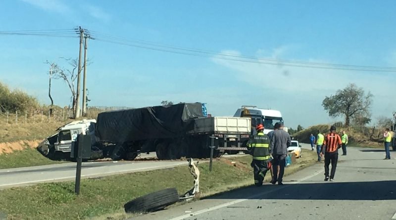 Uma carreta atravessou a pista por volta das 9h desta segunda-feira, 22, na altura do km 5 da Rodovia Engenheiro