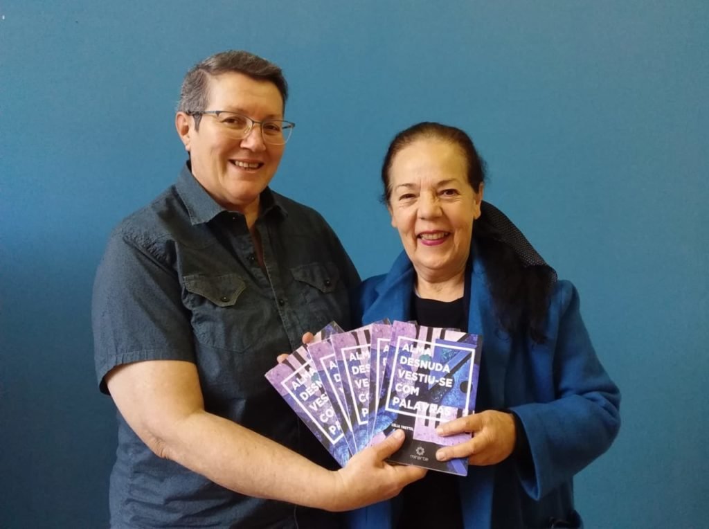 Na foto, a jornalista Rose Ferrari, da Editora Mirarte, com Célia.