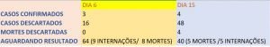 Os números mostra que neste período apenas um caso foi confirmado enquanto 32 casos suspeitos foram descartados. Um aumento também no número de mortes descartadas: antes não havia nenhuma, hoje são quatro. Assim, das 8 mortes suspeitas, atualmente temos 5.