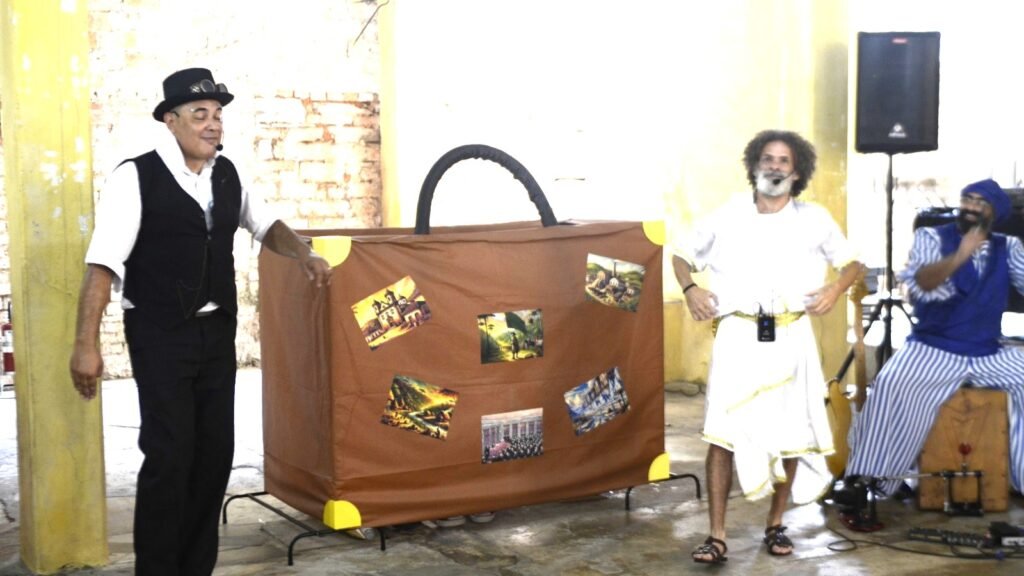 Entre objetos cênicos criativos — como malas que se transformam em máquinas do tempo e dinos jurássicos de Itu — o espetáculo atravessa épocas: do Parque do Varvito e a era dos dinossauros, passando por indígenas, fundadores, imigrantes e personagens do ciclo do açúcar, até o movimento republicano e a moderna capital do humor paulista.