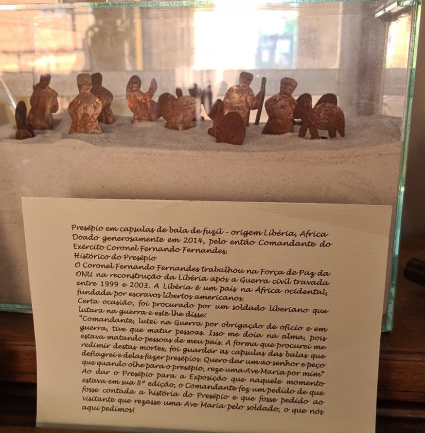 A exposição acontece desde 2004, e recebe diversas doações que só vai aumentando a cada ano. Mas um merece destaque: foi feito com balas de fuzis, de um soldado da Libéria em busca de redenção. Foi doado para um coronel do Quartel de Itu que o repassou para Maria Sofia com a missão que anteriormente lhe foi dada pelo autor: rezar uma Ave Maria pelas vítimas das mesmas.