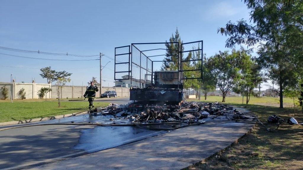 A carga de um caminhão de materiais recicláveis pegou fogo no início da tarde desta quarta-feira, 22, em Itu.