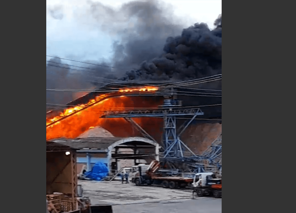 O fogo começou no pátio onde há cinco pilhas de cavacos de madeira.