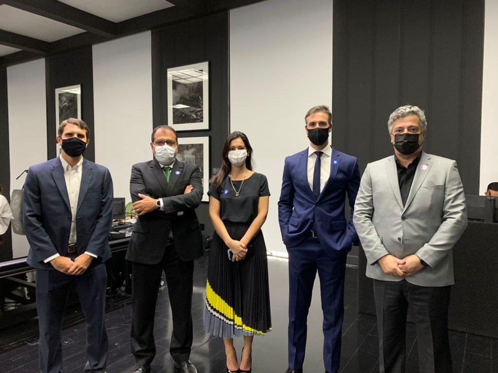Na foto, o prefeito Guilherme Gazzola com diretores da HEINEKEN durante evento do governo de São Paulo, para anúncio dos novos investimentos.
