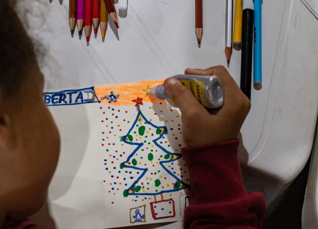 A atividade começou com uma reflexão inspirada em um vídeo do artista Eduardo Kobra sobre os significados universais do Natal. A partir desse momento de sensibilização, os participantes foram convidados a compartilhar vivências e memórias, criando cartões de Natal com produções visuais e poéticas que transmitiram cuidado, esperança e pertencimento.