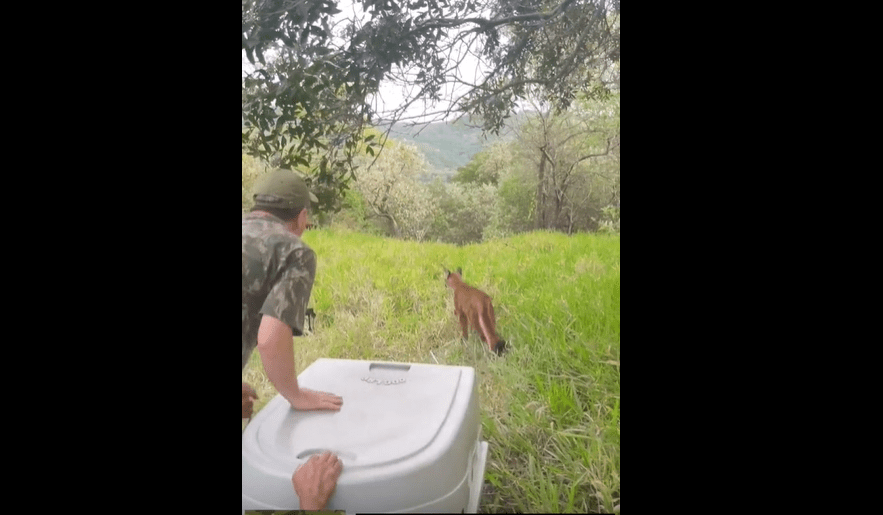 O biólogo Rafael Mana, do Núcleo da Floresta – Pesquisa e Extensão em Fauna e Flora, de São Roque, junto com funcionários da Secretaria de Meio Ambiente e o Corpo de Bombeiros fizeram a captura, sedação, avaliação do animal e, logo após a soltura.
