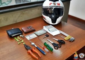 No interior do Fiesta foram encontrados diversos materiais para a prática dos furtos, fita isolante (para adulterar os caracteres das placas) , 9 porções de crack e 02 de maconha.