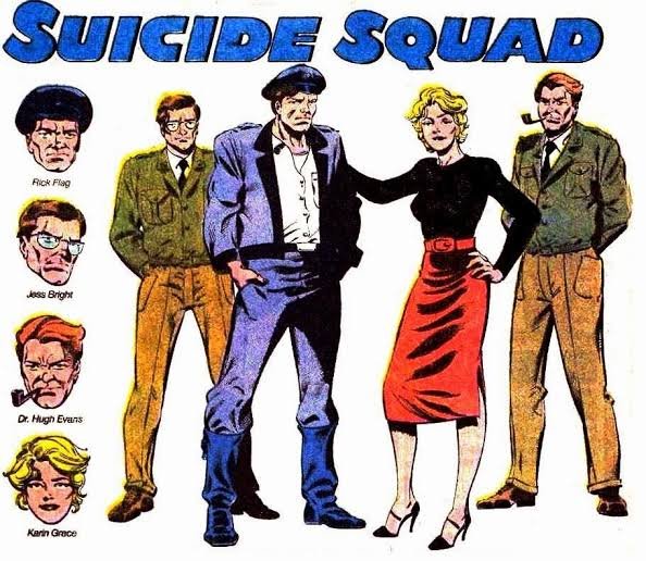Conforme o macarthismo se espalhou pelos Estados Unidos na década de 1950, todos na sociedade estavam sob escrutínio, até mesmo os heróis da Segunda Guerra Mundial, ou seja, a Sociedade da Justiça da América. Em vez de revelar suas identidades, Hawkman indicou que com a ajuda da magia do Doutor Destino, toda a equipe poderia desaparecer e aposentar. Para preencher o vazio, vários departamentos governamentais foram formados para lutar contra os metahumanos e o sobrenatural. Um deles acabou sendo o Esquadrão Suicida, composto por Rick Flag Jr., Dra. Karin Grace, Jess Bright e Dr. Hugh Evans. O grupo lutou por anos, mas acabou encalhado no Himalaia enquanto procurava Shangri-La. Apenas Rick e Karin retornaram desta missão e Karin estava psicologicamente fraturada e não podia mais continuar na equipe.