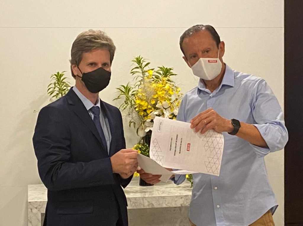 Nessa semana, o prefeito e o vice-prefeito, Laerte Sonsin e Edemilson Santos, estiveram na sede da FIESP (Federação das Indústrias do Estado de São Paulo), para entregarem ao presidente da entidade, Paulo Skaf, a proposta de Convênio a ser firmado entre a Secretaria Municipal de Ensino e o Sistema SESI-SP. “Esse é um sonho, que agora vamos realizar. O processo está em tramitação, mas já em fase bem avançada, faltando apenas alguns detalhes técnicos. Acredito que em poucos dias já formalizaremos essa parceria e traremos ainda mais qualidade para a educação municipal, tornando-a referência na região”, afirmou o prefeito Laerte Sonsin.