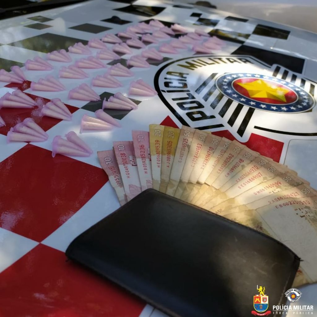 Na abordagem, foram localizados 128 pinos de cocaína e a quantia em dinheiro de R$ 630,00. O indivíduo permaneceu à disposição da justiça.